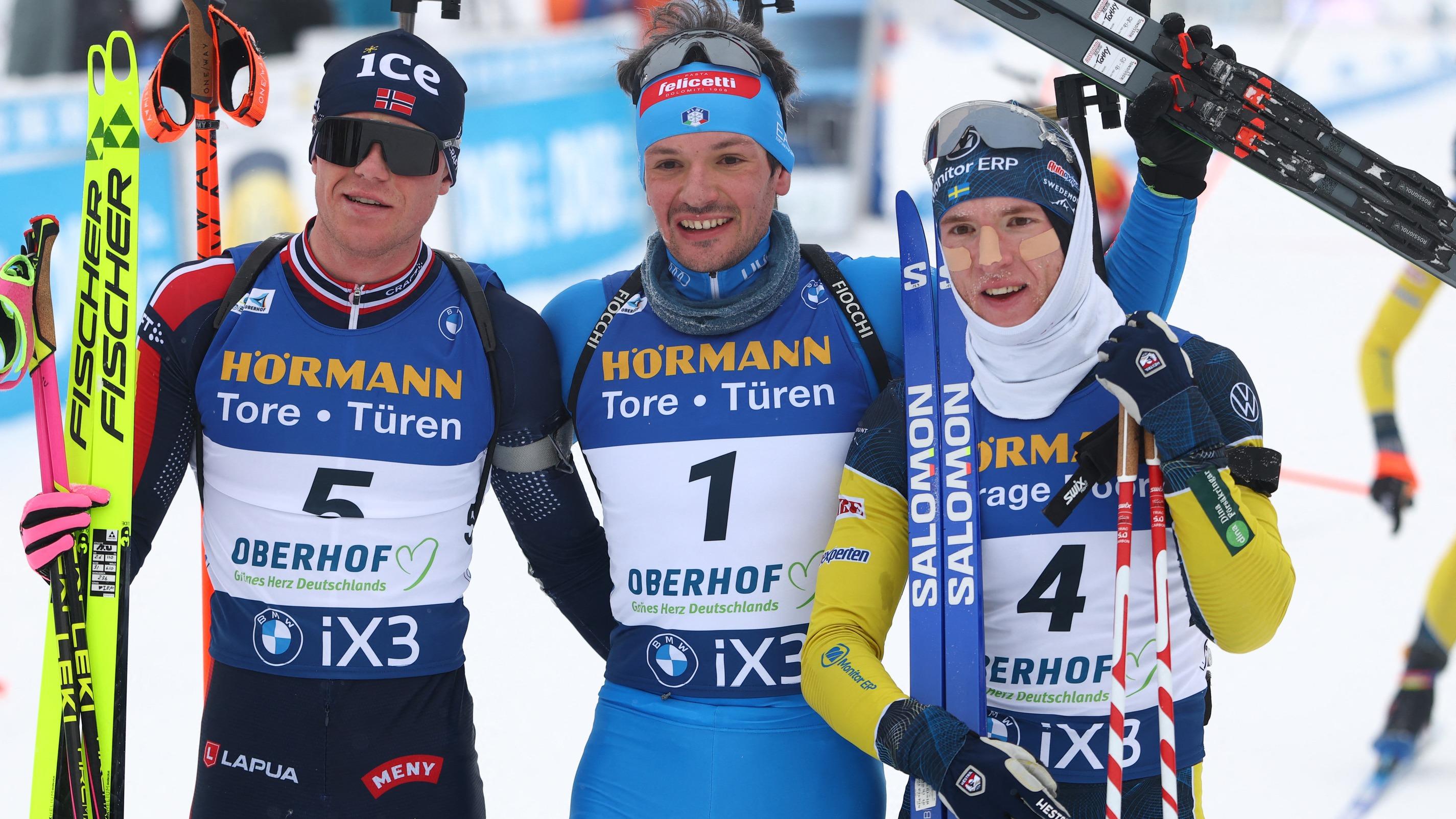 Malgré de nombreuses erreurs sur le pas de tir, Tommaso Giacomel a remporté ce samedi la poursuite d’Oberhof. Eric Perrot perd de précieux points au classement général.