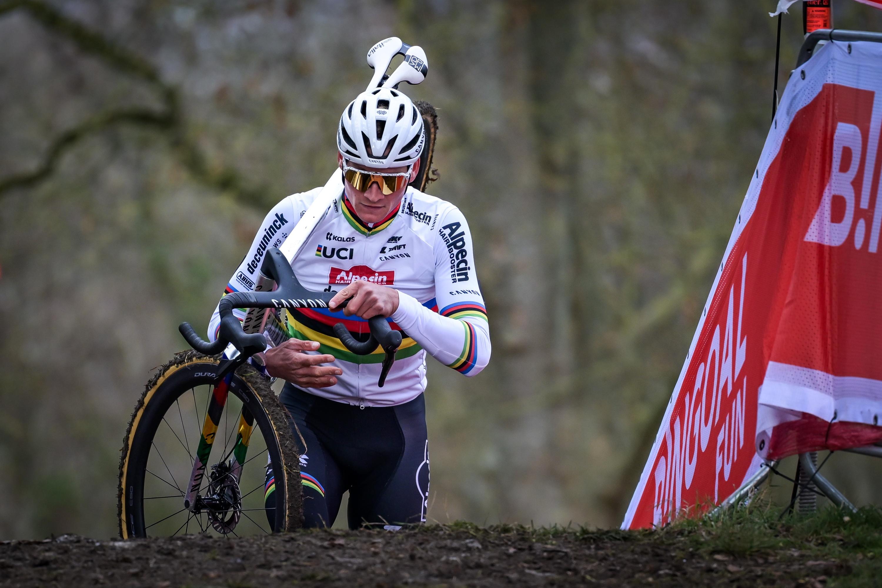 Le champion du monde Mathieu van der Poel a remporté dimanche la manche de Coupe du monde de Namur, en Belgique, pour son premier cyclo-cross de l'hiver, après une superbe bataille face à Thibau Nys.