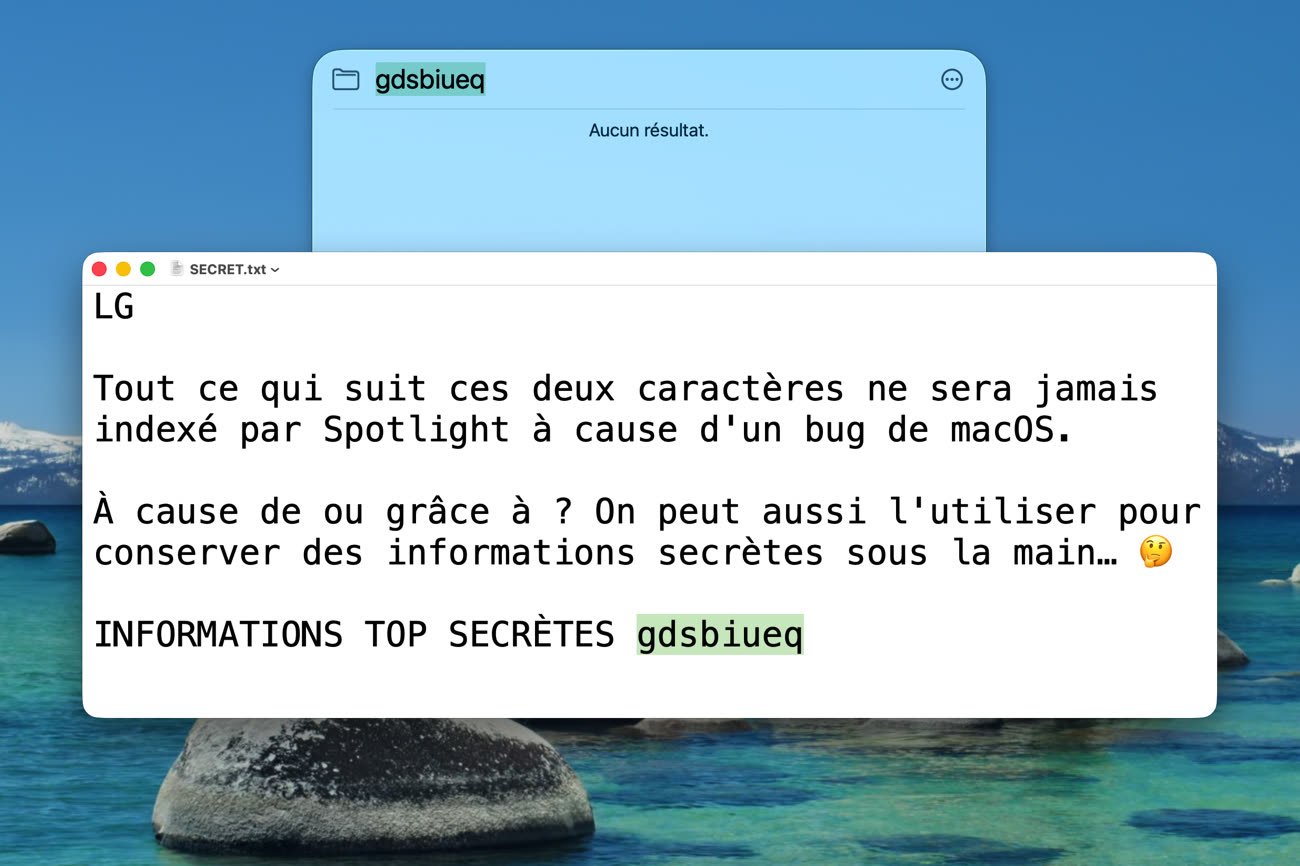 Il faut reconnaître que ce bug était bien caché : il ne fonctionne qu’avec les fichiers en texte brut, pas ceux en texte enrichi, et les caractères incriminés doivent être les premiers. Ajoutez un espace juste avant et l’indexation par Spotlight se fera normalement. Oubliez une majuscule et de la même manière, le contenu sera correctement ajouté à la base de données. Cela explique sans doute pourquoi il est passé si longtemps sous les radars d’Apple et on peut espérer qu’il sera corrigé dans une future version de macOS maintenant qu’il a été rendu public.