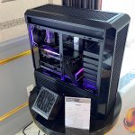 Lian Li’s desk‑style chassis also returned in updated form. The DK‑07 Wood and DK‑B models were shown with revised layouts, including sliding or retractable system compartments and integrated display elements.
