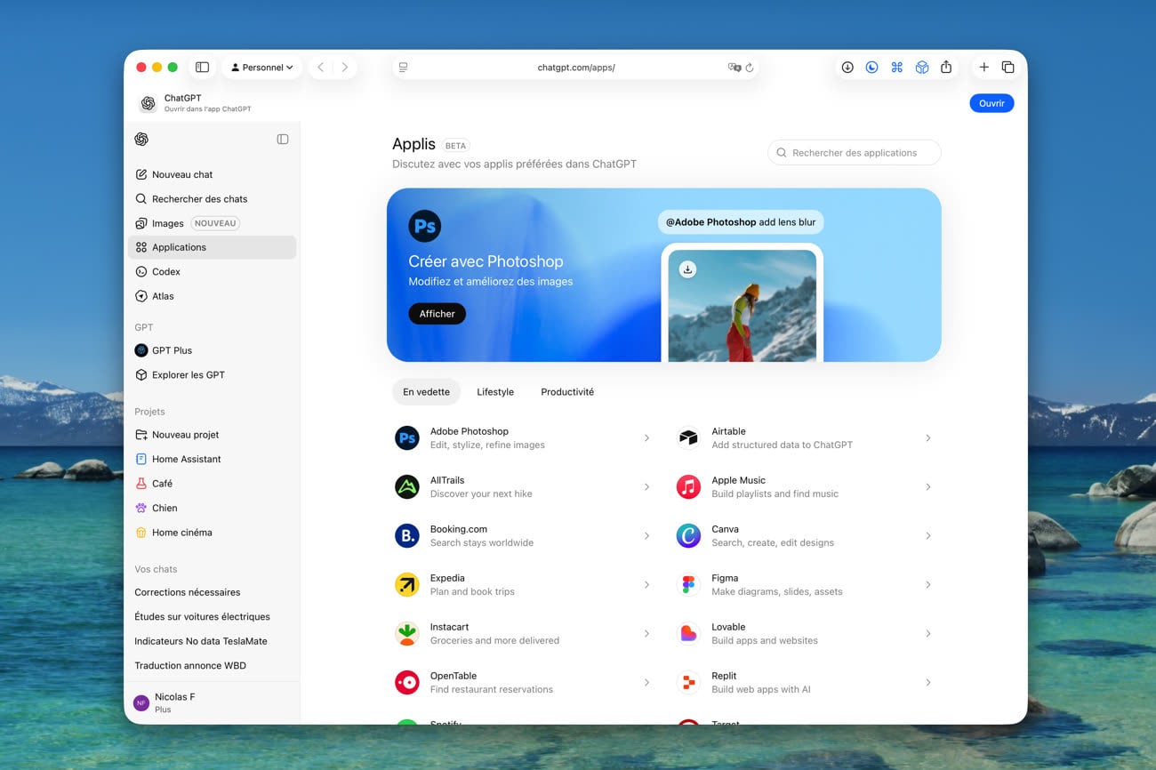 Ceci fait, on peut demander à ouvrir une nouvelle discussion dans ChatGPT et utiliser l’app justement ajoutée. Cette dernière s’ajoute aussi derrière le bouton « Plus » du menu contextuel associé à chaque échange. C’est une nouvelle option qui rejoint toutes les autres, comme la recherche sur le web, le mode agent ou encore le mode optimisé pour étudier. Là encore, ces apps apparaissent aussi bien sur la version web sur sur iOS, la version macOS de ChatGPT n’y aura sans doute droit que dans un deuxième temps.