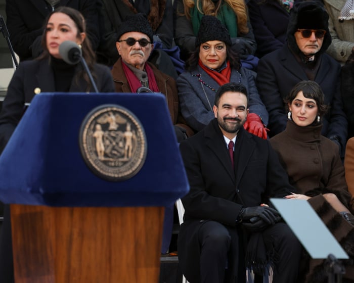 New York chose ‘courage over fear’, AOC says at Zohran Mamdani’s inauguration ceremony – live