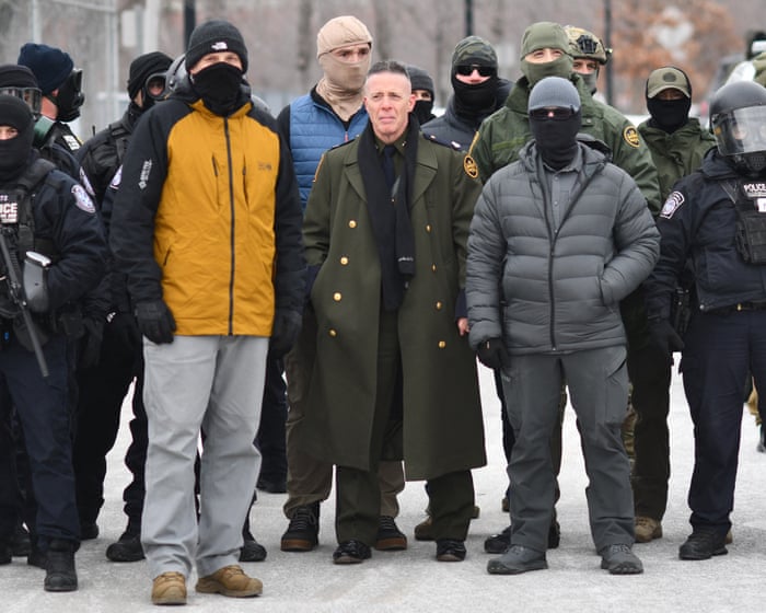 Bovino has been an increasingly recognisable figure during the raids in Minneapolis for the brass-buttoned, calf-length olive green coat, which is unlike the fatigues and body armor worn by many of the federal agents.