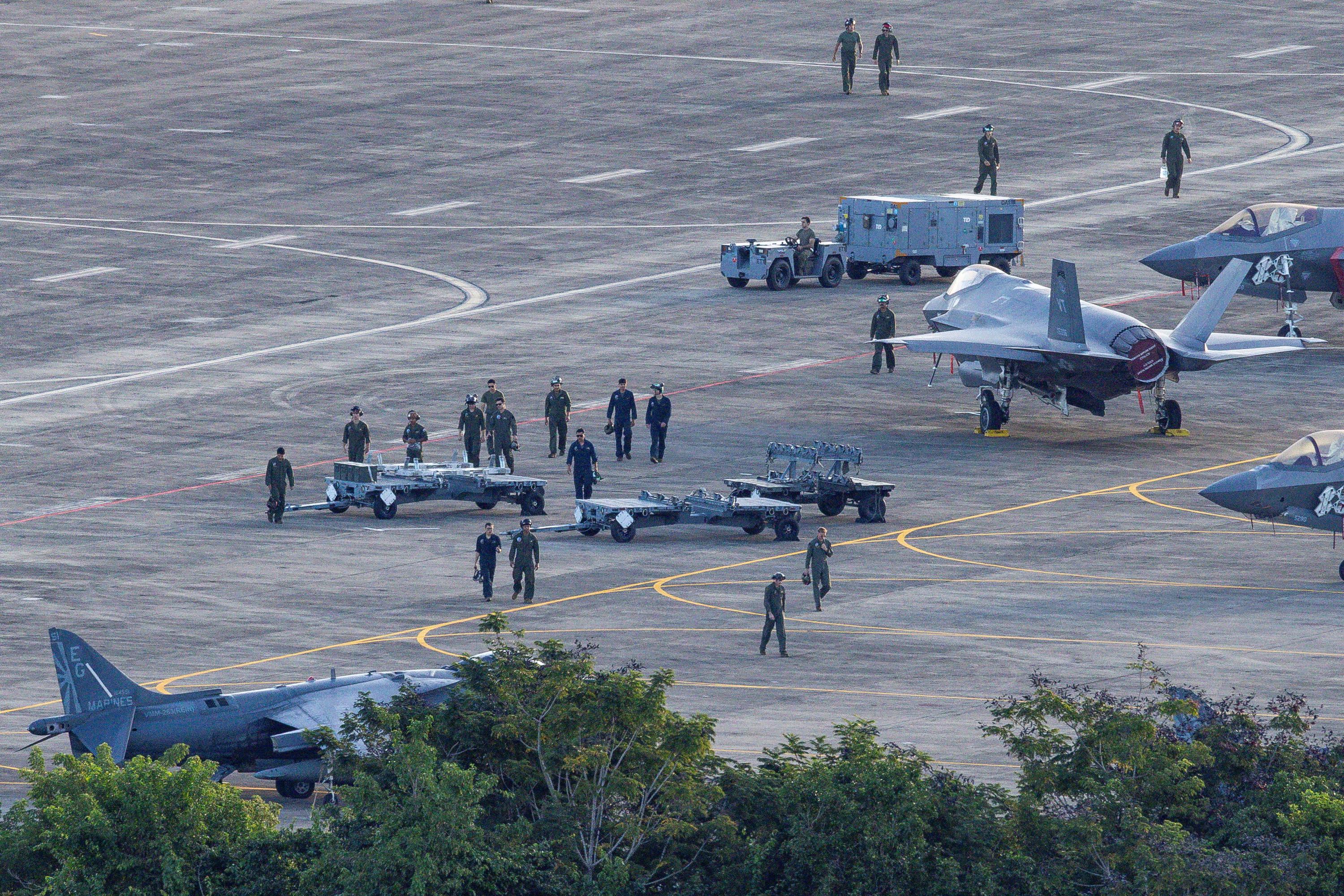 Des F-35 de l’US Air Force participant aux opérations au Venezuela, en alerte sur la base de Ceiba, à Puerto Rico.