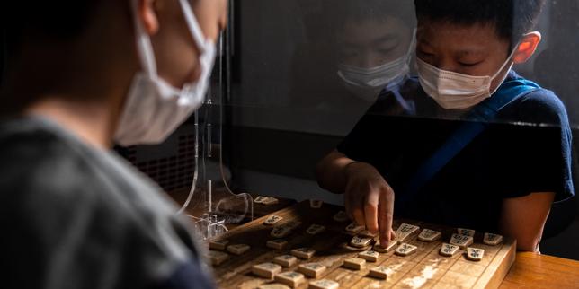 Des élèves s’entraînent au shogi lors d’un cours dans une école de shogi à Kashiwa, dans la région de Chiba (Japon), le 3 octobre 2021.