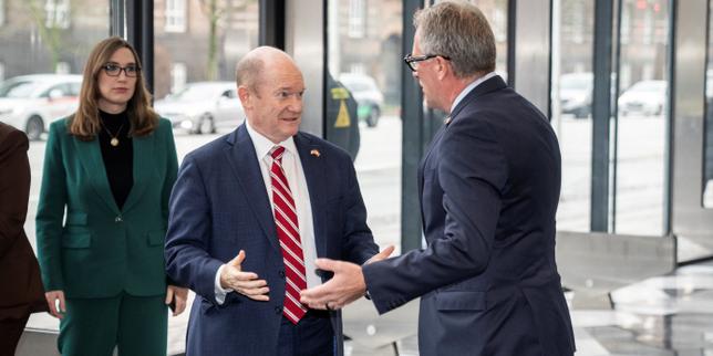 Le sénateur américain et membre d’une délégation américaine, Chris Coons (D-DE), à Copenhague, au Danemark, le 16 janvier 2026.