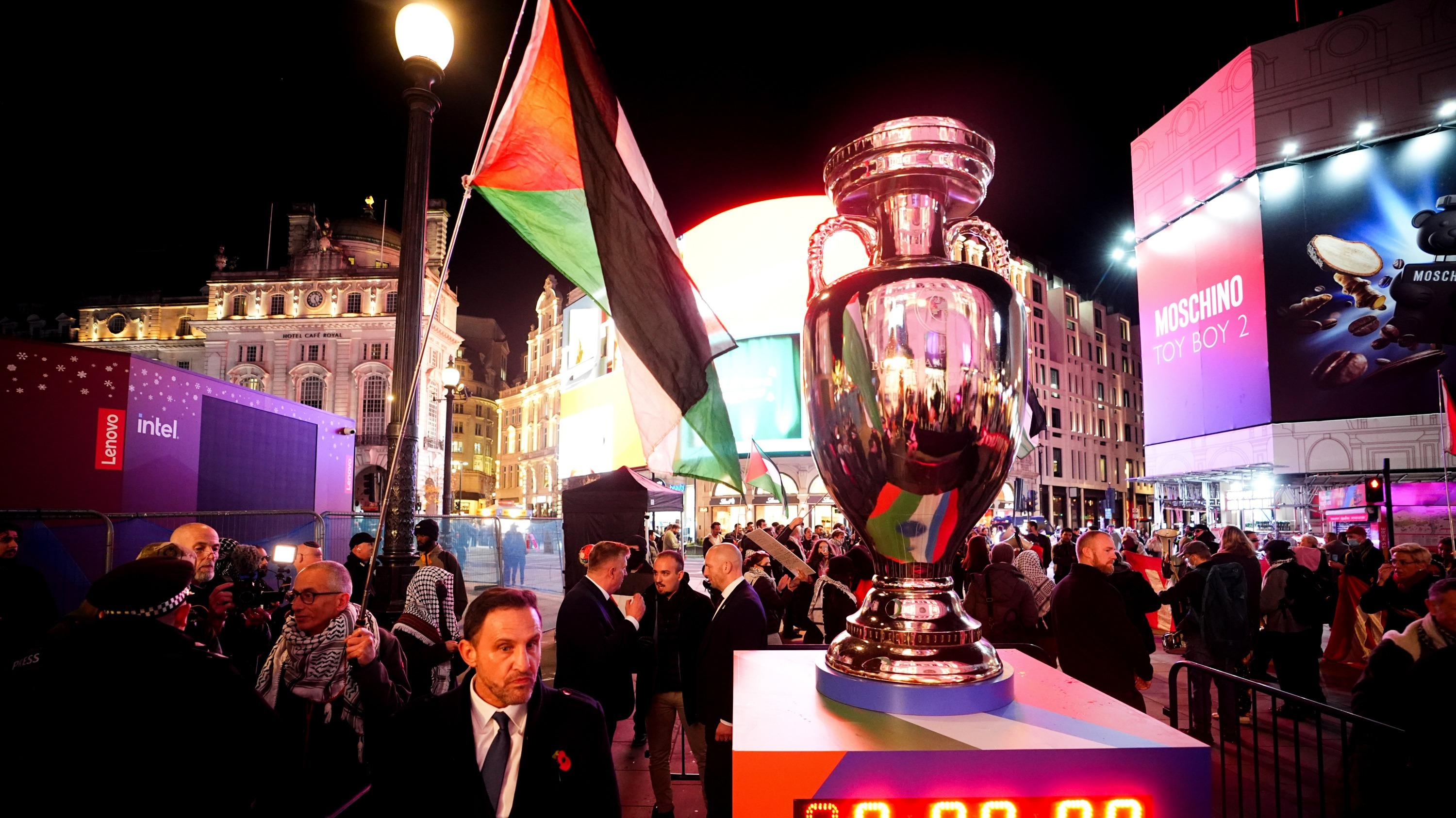 Le lancement officiel de l’Euro 2028, organisé ce mercredi à Londres, a été troublé par des militants pro-Palestine demandant l’exclusion d’Israël de la compétition.