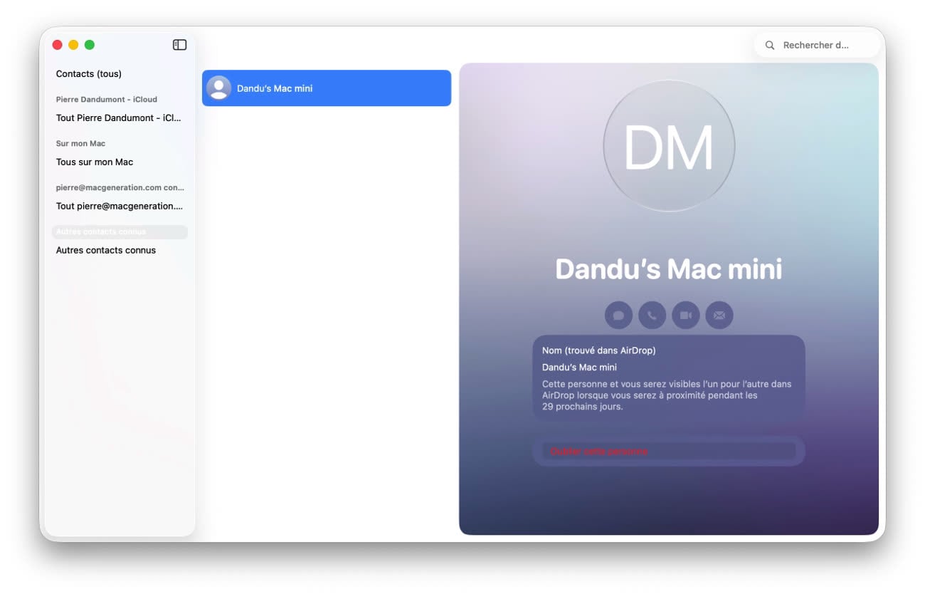 La nouvelle option Contacts AirDrop connus liste les contacts temporaires.