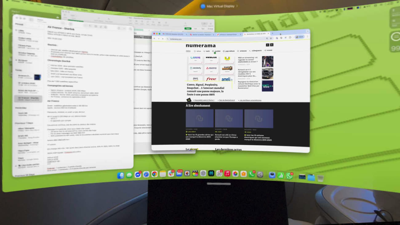 Dans les meilleurs moments, le casque s’efface : les fenêtres flottent dans l’air, la pièce devient un immense espace de travail. Puis un léger inconfort revient, un rappel que la réalité a encore son mot à dire.
