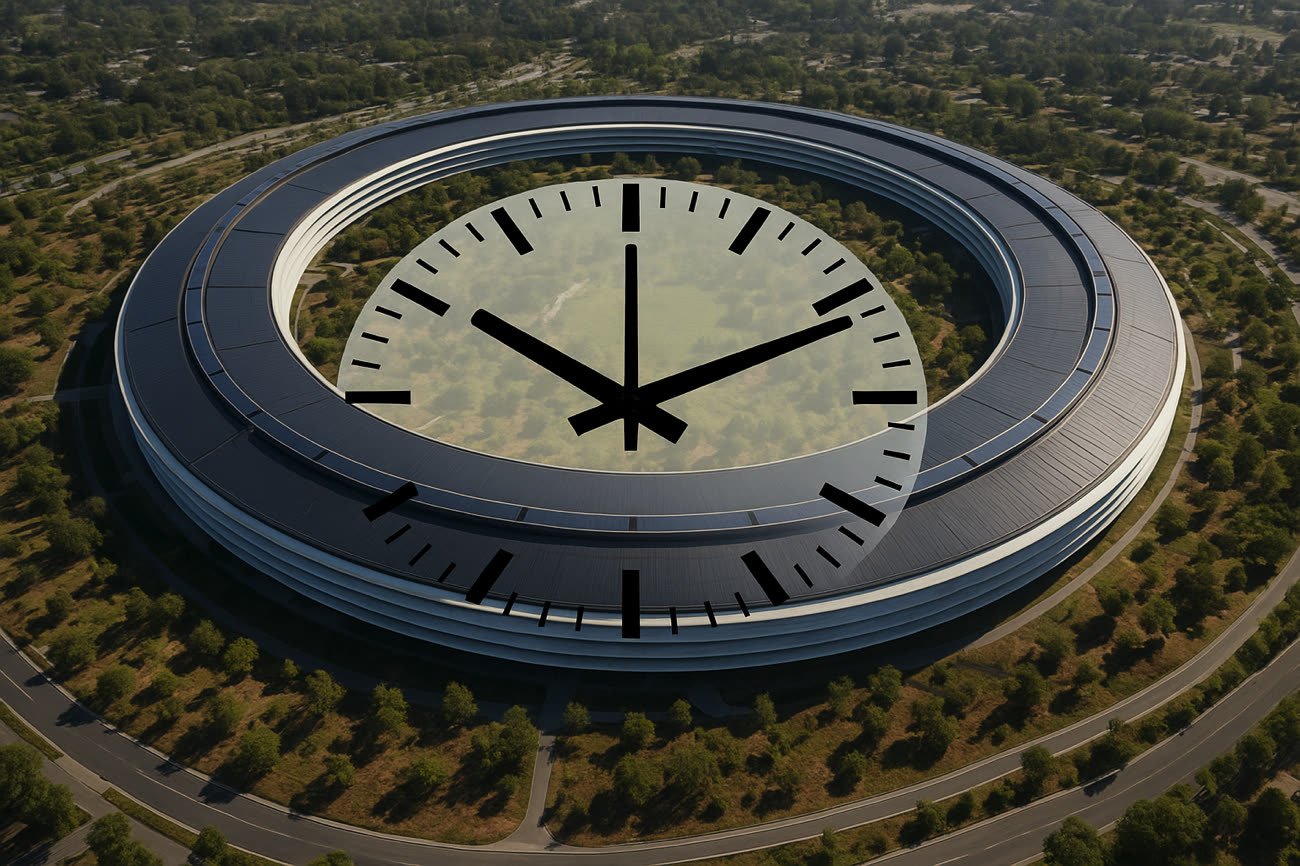 Rond comme un cadran, ça ferait une sacrée horloge au centre de l’Apple Park ! Image générée par IA.