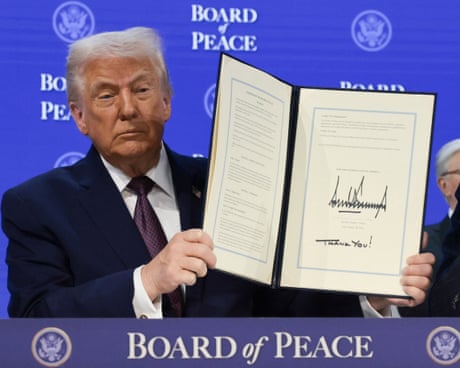 Donald Trump has claimed the world is “richer, safer and much more peaceful than it was just one year ago” as he hosted a launch event for his “board of peace” initiative at the World Economic Forum in Davos.
