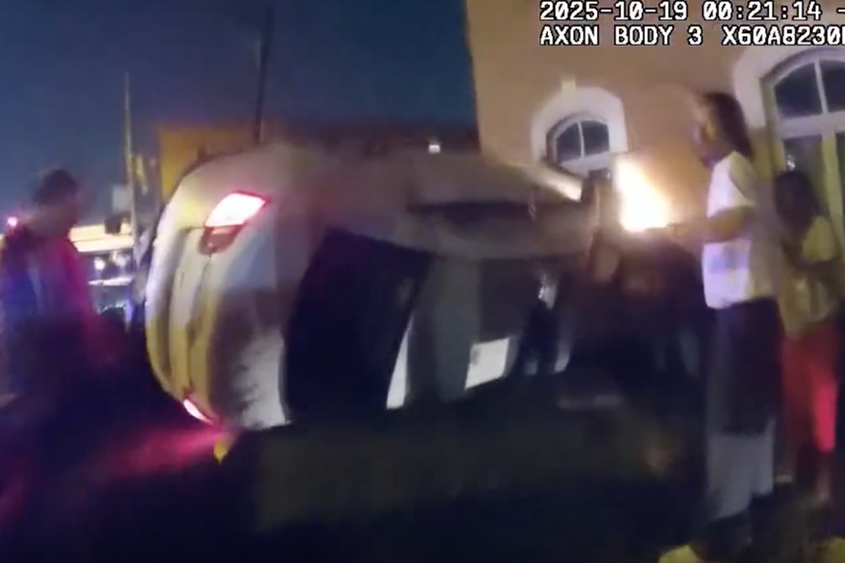 Watch the moment that Good Samaritans and cops team up to flip over a car to rescue a juvenile trapped underneath.
