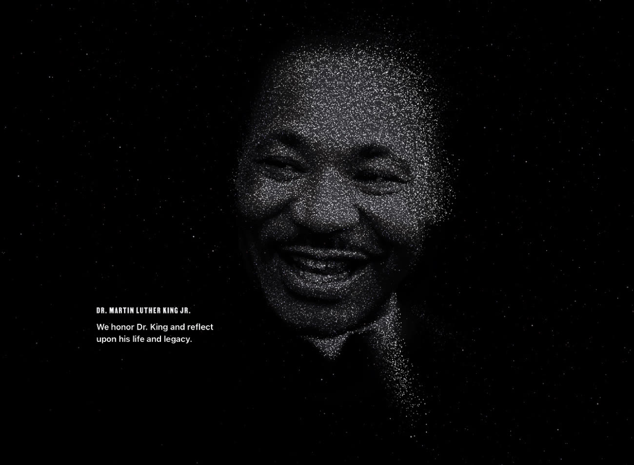 Aujourd’hui, c’est férié aux États-Unis. Ce 19 janvier marque la journée de célébration du Martin Luther King Day, et Apple a mis à jour la page d’accueil de son site américain pour l’occasion. C’est une petite tradition à Cupertino, qui y va de son hommage chaque année depuis 2016.