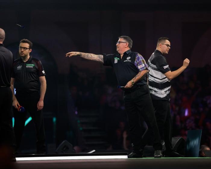 First set: *Littler (0) 0-1 Searle (0) *denotes next to throw first Searle gets down to 56 and takes it out with Littler waiting on double top. “Ryan, Ryan, Searle” chant the crowd, to the perhaps overused tune of KC & the Sunshine Band’s “Give it Up.”